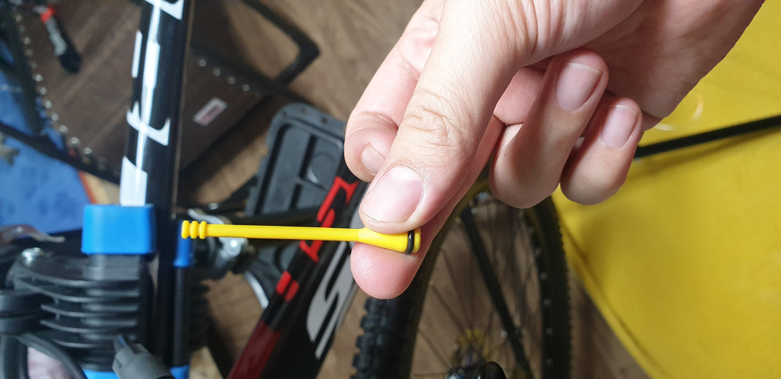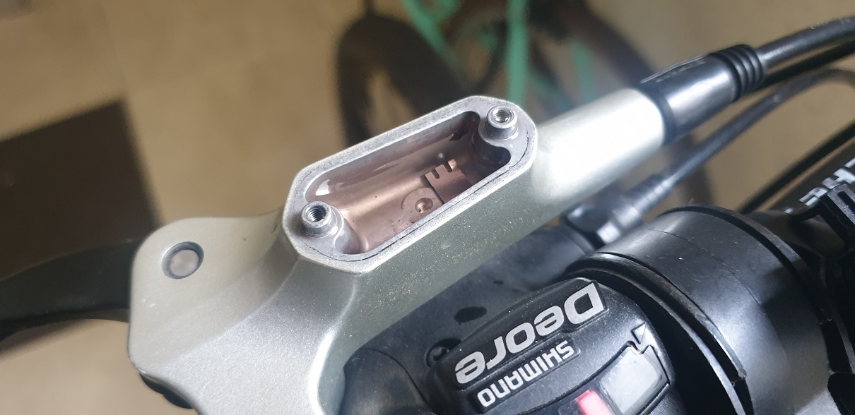 이렇게 생긴 유압 브레이크는 오일을 넘칠때까지 꽉 채워주고 캡을 닫아줘야한다.