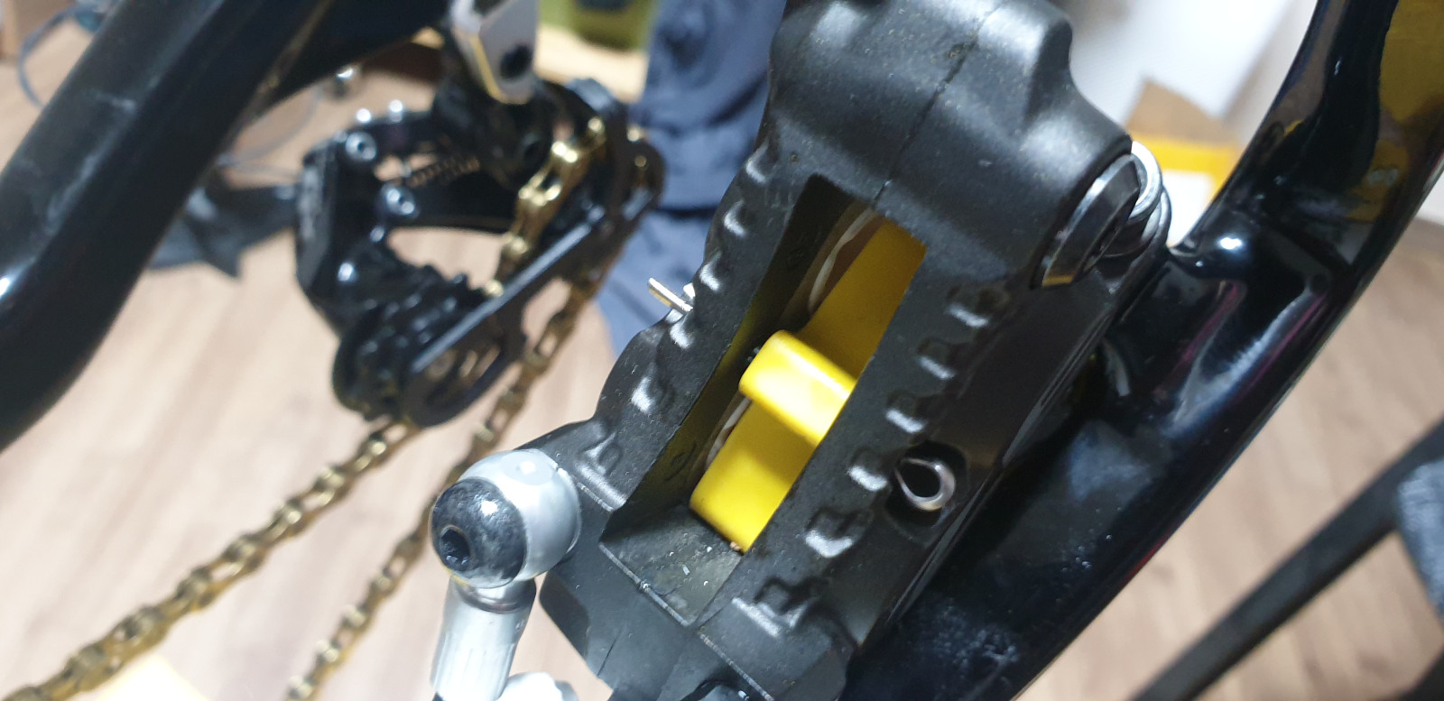 이제 브레이크 캘리퍼에 패드 블럭을 설치하고,