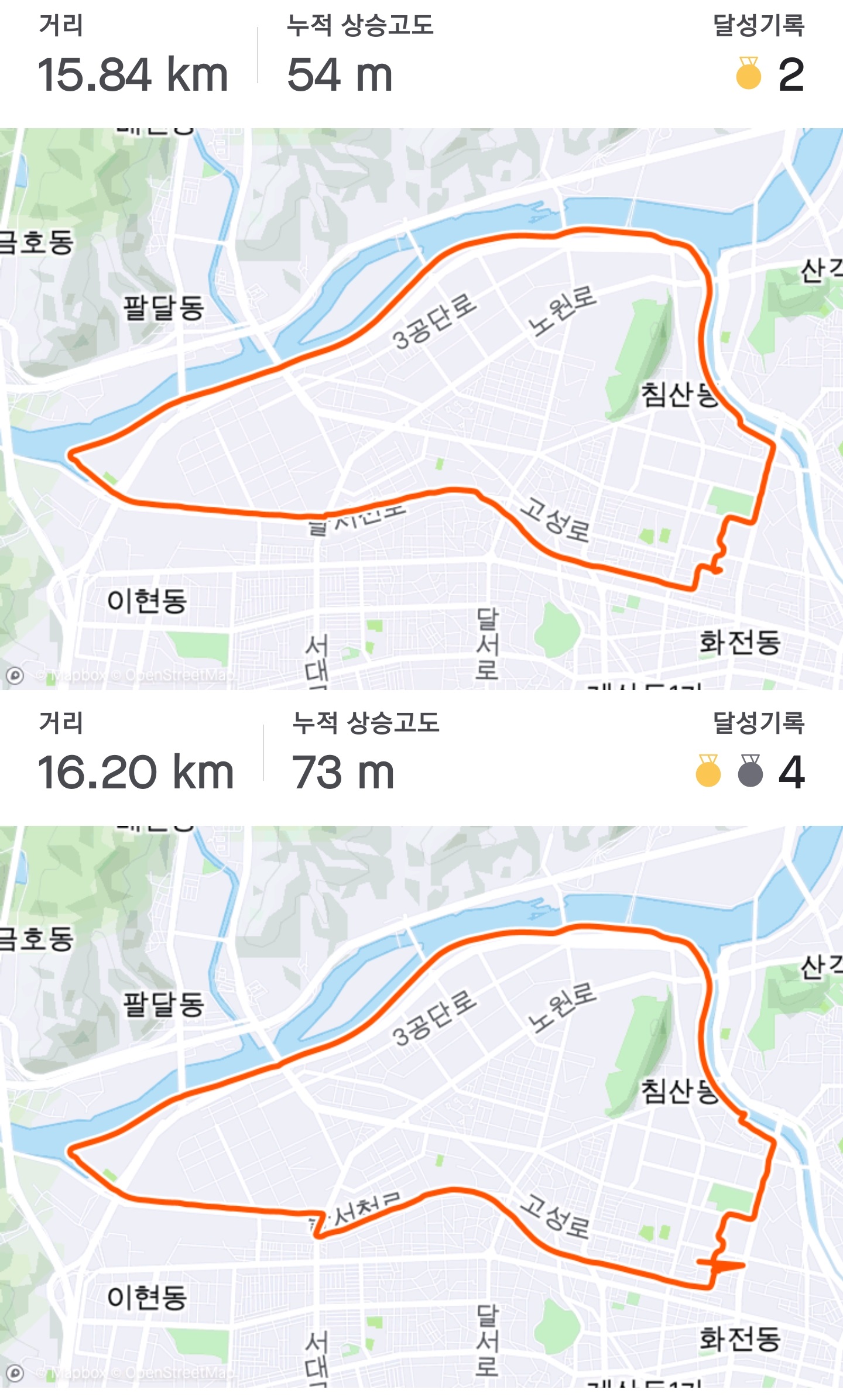 섬유공단을 돌아 집으로 오는 코스로 변경했다.