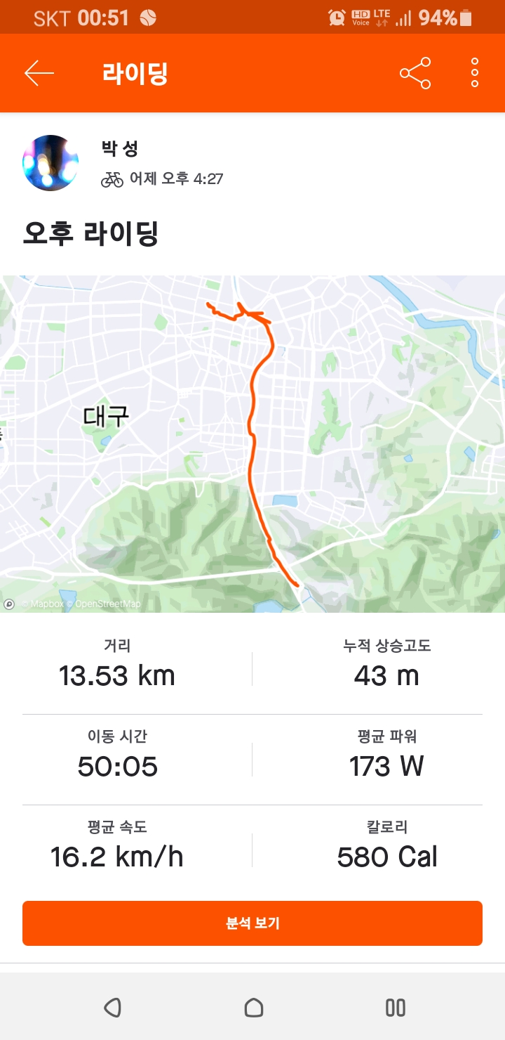 가창 방향으로 갈때에는 사람들이 많아서 적당히 속도를 유지하고 가야했다