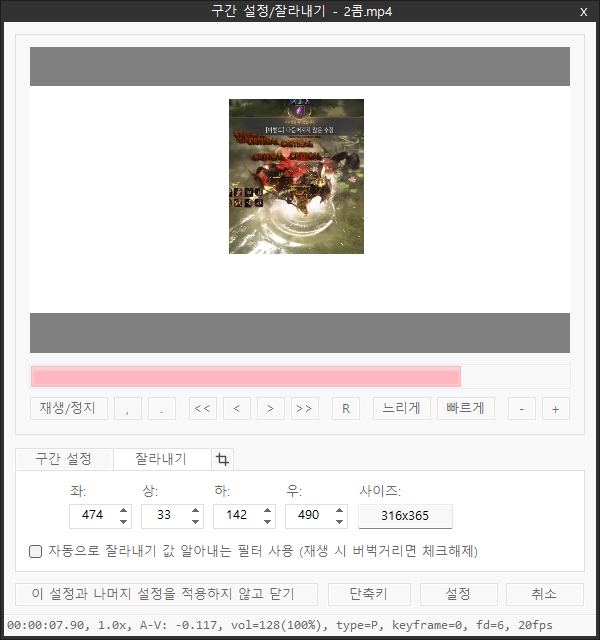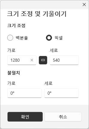 잘라내기 옆 아이콘 클릭 후 직접 지정 또는 잘라내고 싶은 사이즈를 입력 후 하단의 설정 버튼을 반드시 클릭