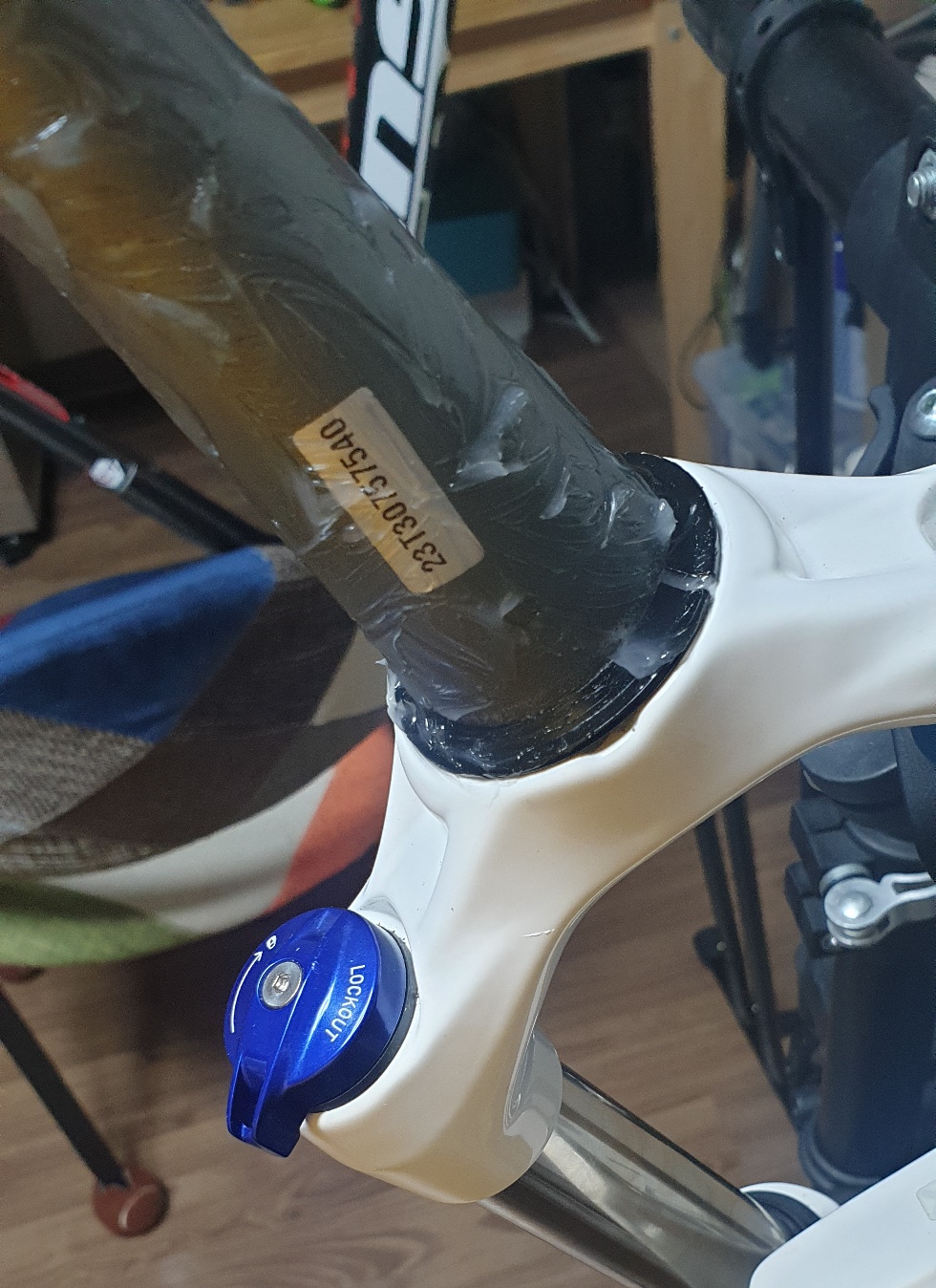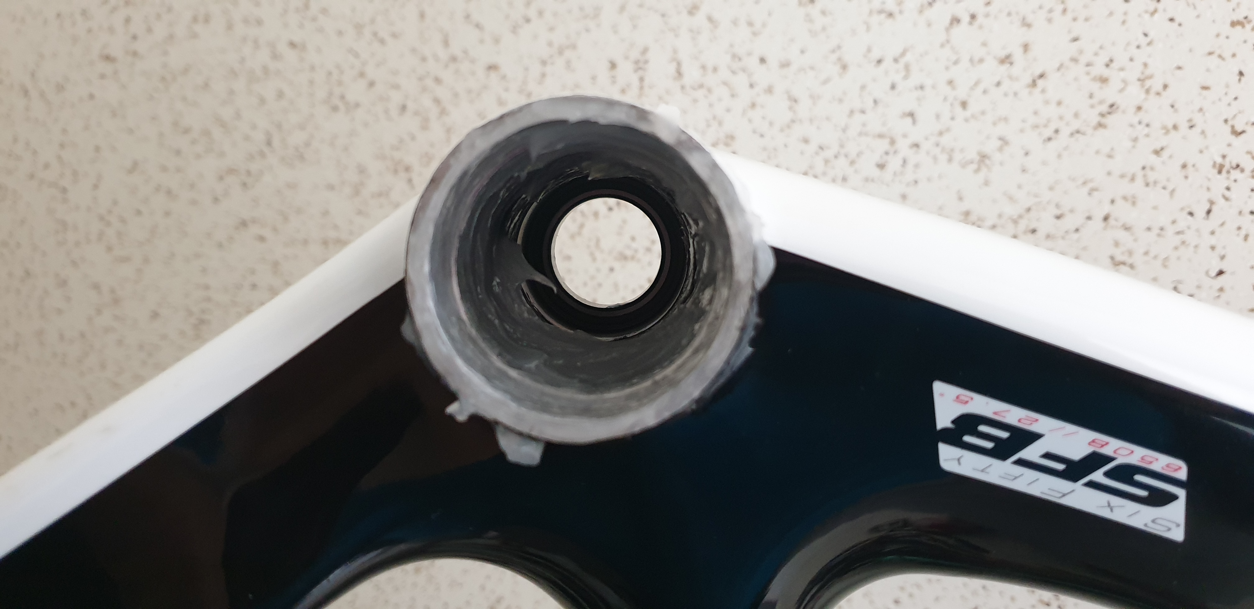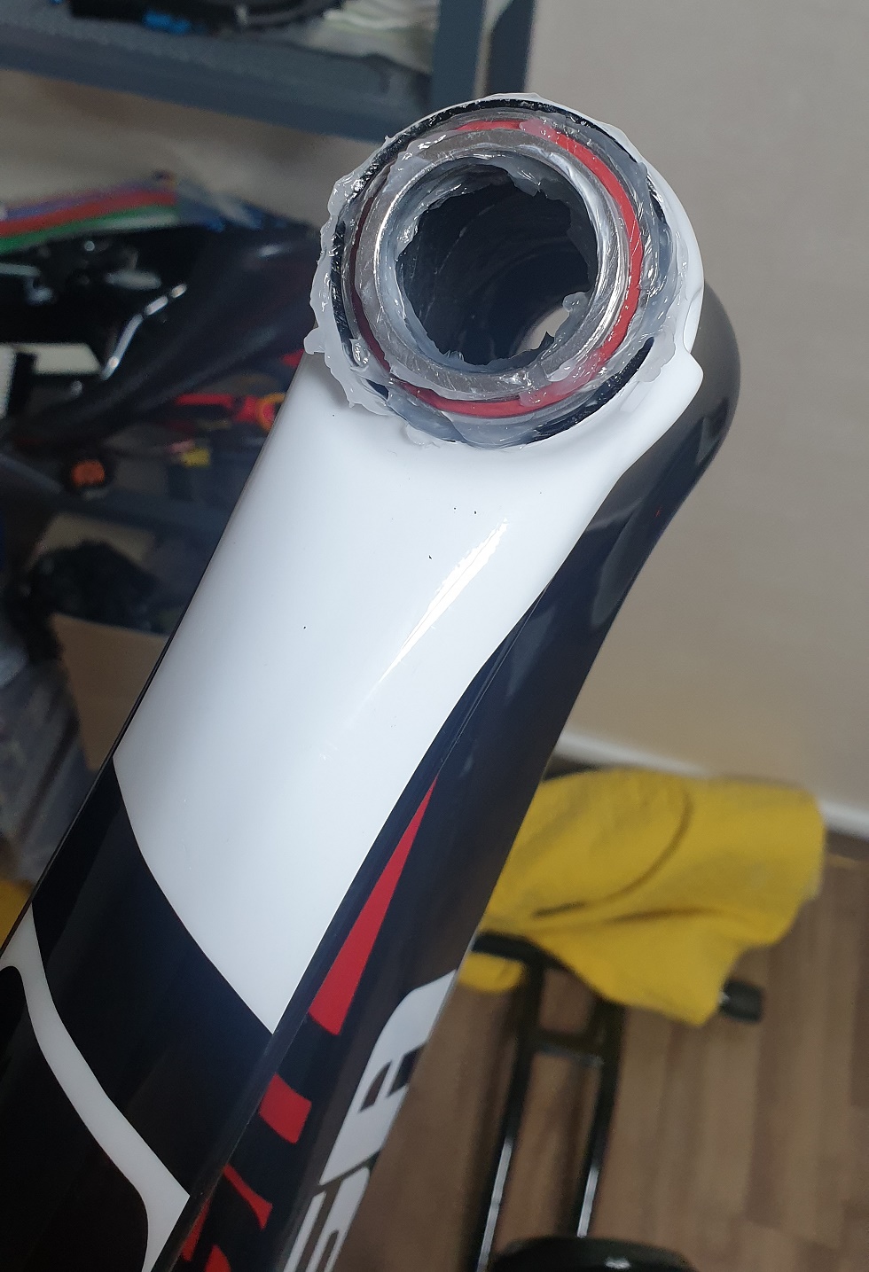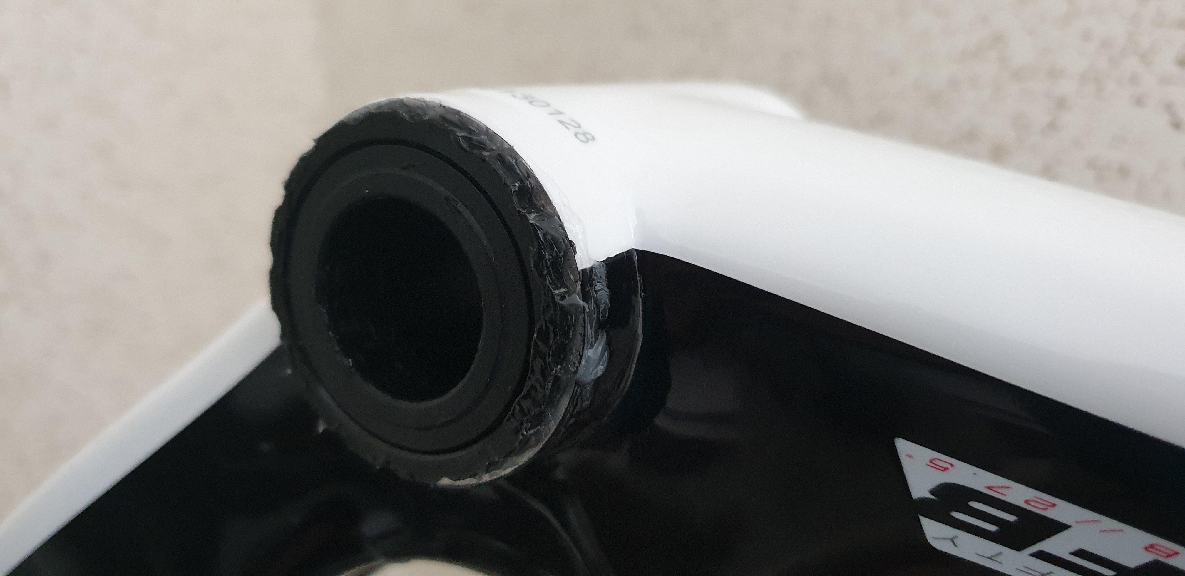 헤드튜브 조금 찌그러짐. 조립엔 문제가 없어보임.