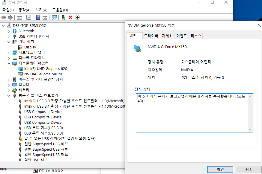 DDU로 MX150 그래픽 드라이버 삭제 후 재설치