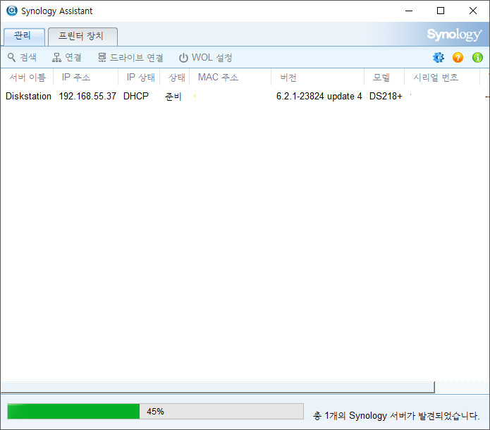 시놀로지 어시스턴트를 이용해 자기 NAS의 주소를 찾아낸다.
