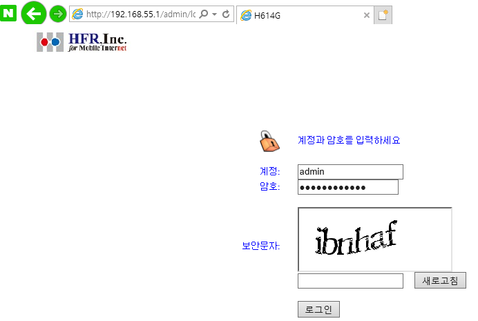 192.168.55.1 에 접속하고