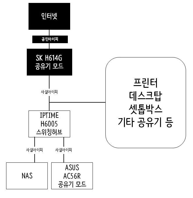 이 게시물은 H614G를 공유기 모드로 변경 후NAS와 PC를 동일한 네트워크 안에 포함되게 작업한 것을 작성한 글이다.