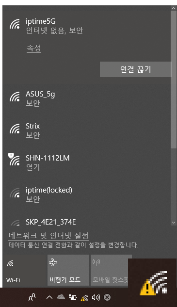 iptime5G에 와이파이가 연결이 되어 있는지 확인 or 메모