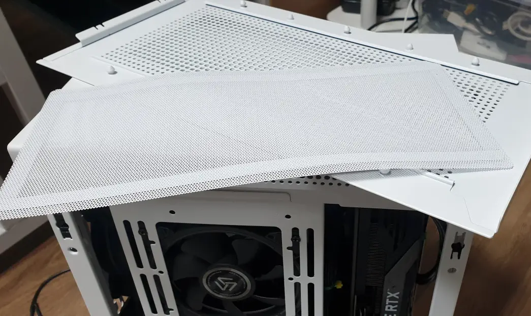 먼지필터는 자석식이며 사이드패널 및 프론트 패널. 탑/바텀 패널또한 경첩식으로 나사 없이 조립 할 수 있었다. 먼지필터의 경우 두껍고 얇은 구멍이 촘촘이 파여있어서 생각한 만큼 쿨링이 좋지않다는 것이 단점이다. 먼지필터를 제거한 사이드패널, 탑/바텀 패널에서의 쿨링효과도 좋은 결과를 기대하지 못할만큼의 성능을 보여준다.
