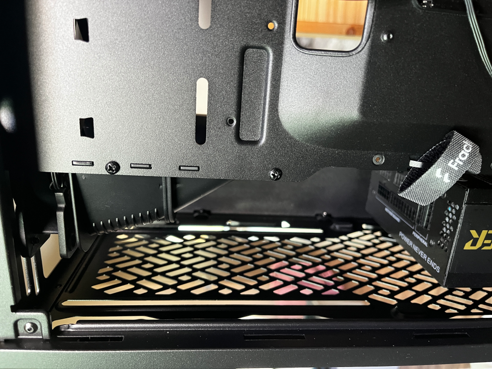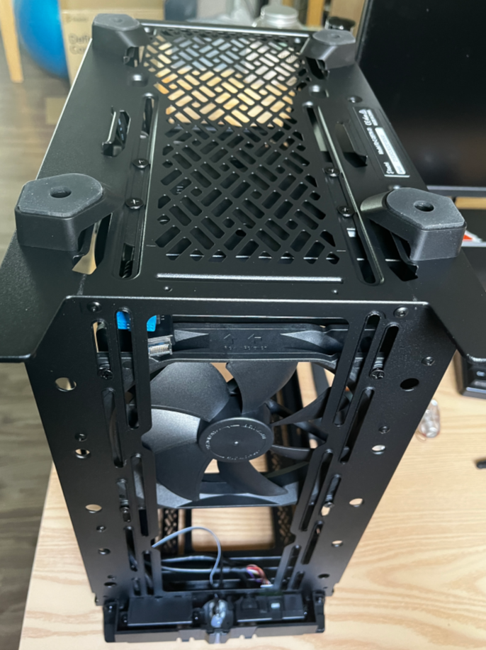 길이가 짧은 SFX 파워 서플라이를 사용하기 때문에 120mm 팬쿨러 2개를 장착해보려 했으나 불가능했다