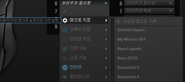 마우스 클릭등의 입력은 지원하지 않으니 매크로 기능의 자유도가 그리 높지 않다.