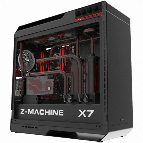 시간이 지나 잘만의 새로운 Z-MACHINE 케이스 X7이 출시되었다. 이걸 본 순간 머릿속에서는 케이스랩의 커스텀 수랭 전용 케이스와 커세어 900D, 그리고 EVGA의 빅타워 케이스들이 스쳐지나갔다. 측면 상단부에 설치되어있는 팬컨과 USB 포트, I/O패널 그리고 케이스 내부에 물통을 2개 이상 설치할 수 있는 심플하고 넓은 공간과 파워커버에 각인된 Z-MACHINE X7 LED 패널 등등이 아주 매력적이다.