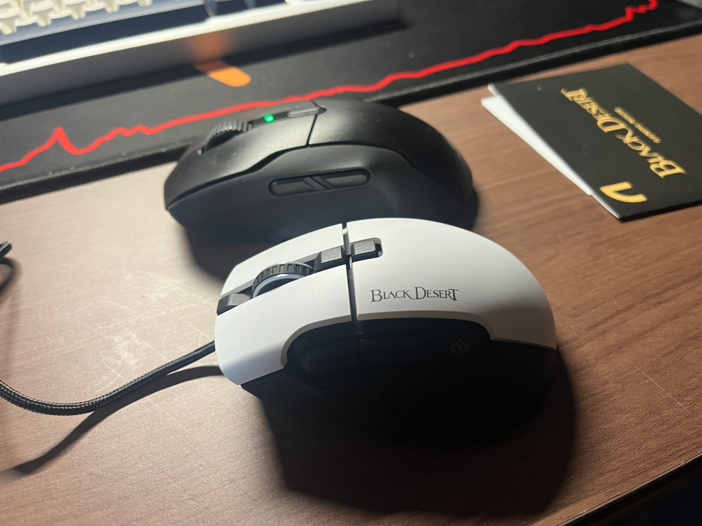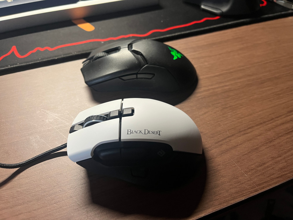 사진상으론 바무선과 길이가 같아 보이지만 바무선이 좀 더 길다. 콘에어는 바무선보다 큰 마우스인데 사진을 비스듬하게 찍어서 크기가 잘 가늠이 안되는 듯 하고 다시 찍기는 귀찮으니 그러려니 봐줬으면 좋겠다.