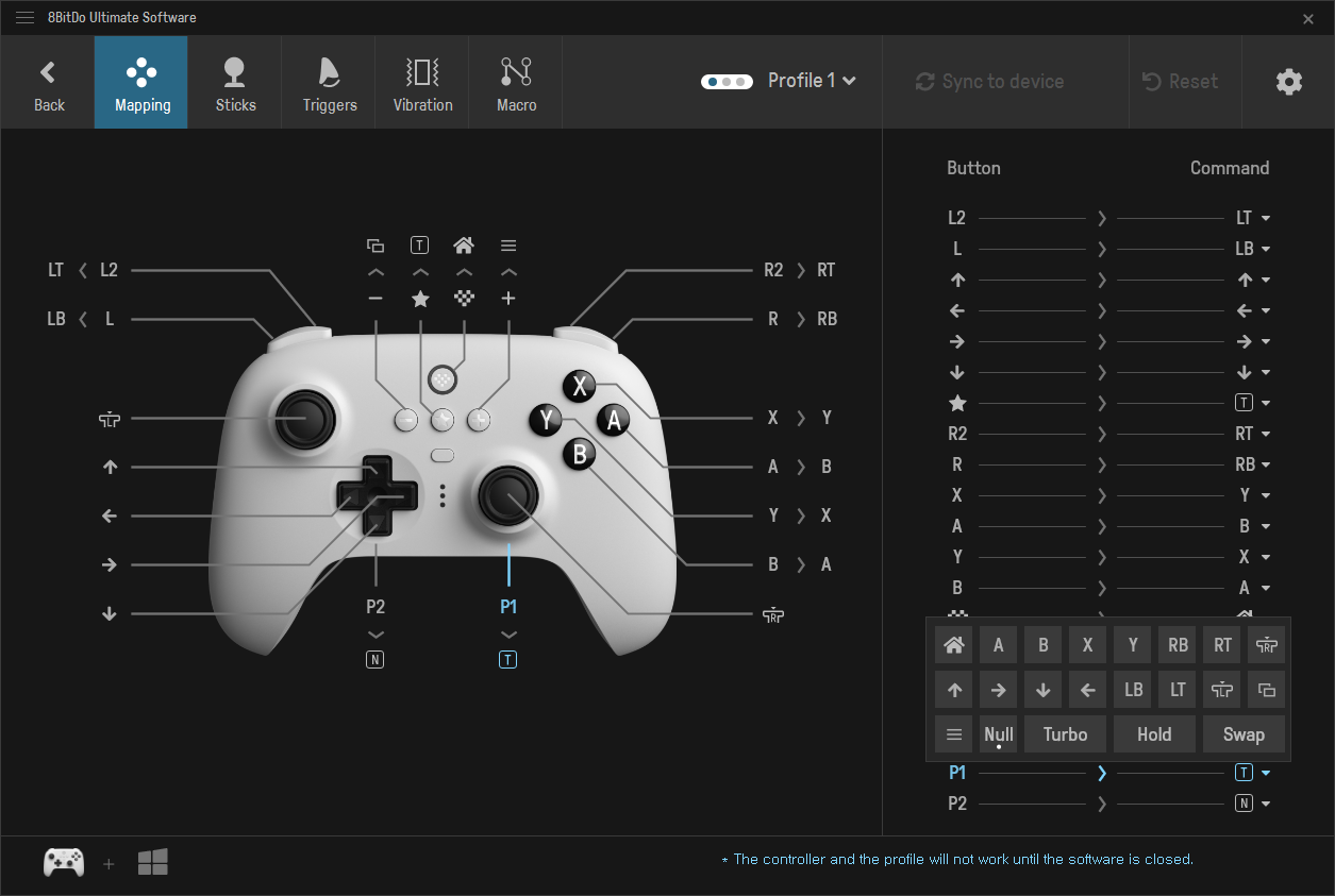 8Bitdo Ultimate Software에서 편의기능을 등록할 수 있는 기능 버튼이다.