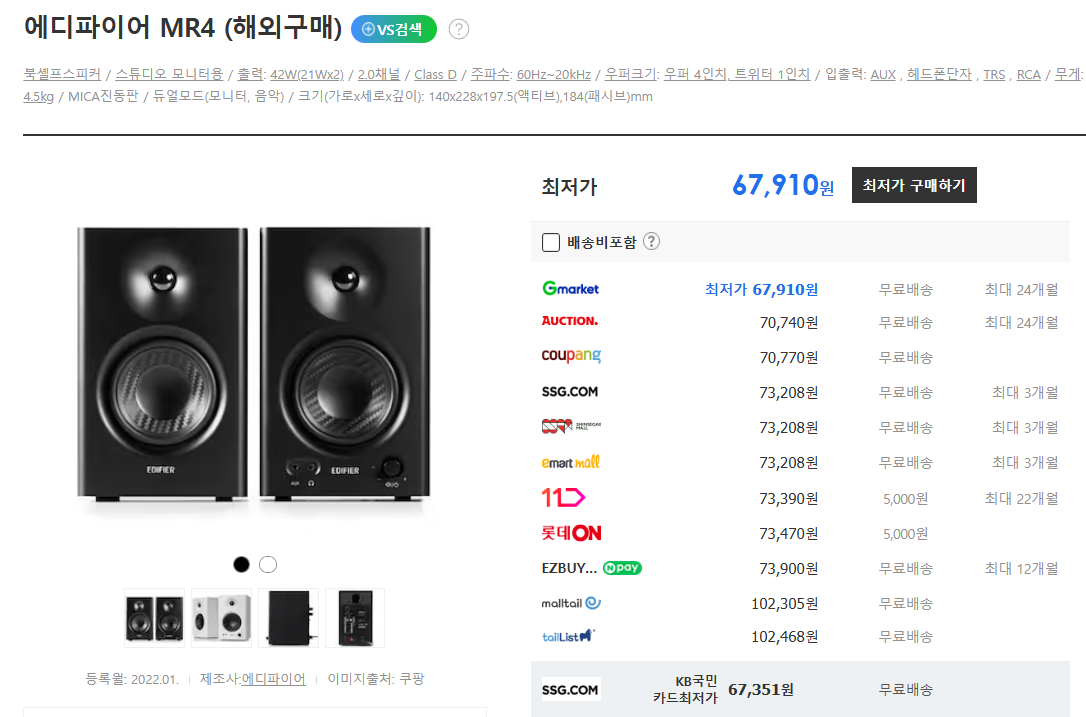 생각났다. 작년이었나, 재작년 쯤에 PC하드웨어 커뮤니티 등지에서 둥글둥글 귀여웠던 오디오엔진 A2의 인기만큼 뜨거웠던 가성비 스피커다. 크기는 애매하지만 사운드바에서 애를 먹을바에는 차라리 이런 북쉘프 스피커가 좋아보인다. 게다가 둘러본 제품중에서 가격이 제일 저렴하기도 하니까.