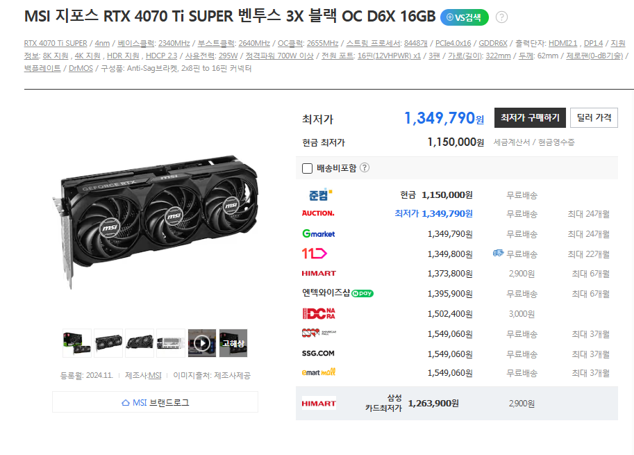 결국 4070 Ti SUPER를 당근마켓에서 구매했다. 최대한 저렴한 제품을 찾다 보니, 등급을 따지지 않고 구매했지만 벤투스 블랙 모델은 출시된 지 얼마 되지 않아 AS 기간도 빵빵했고, 4080급 벤투스 쿨러가 장착되어 있다는 점에서 기존 4070 Ti SUPER 은색 모델과는 차이가 컸다. 사람들이 벤투스를 무작정 쓰레기라고 까지만, 블랙 모델은 다르다는 것이다.