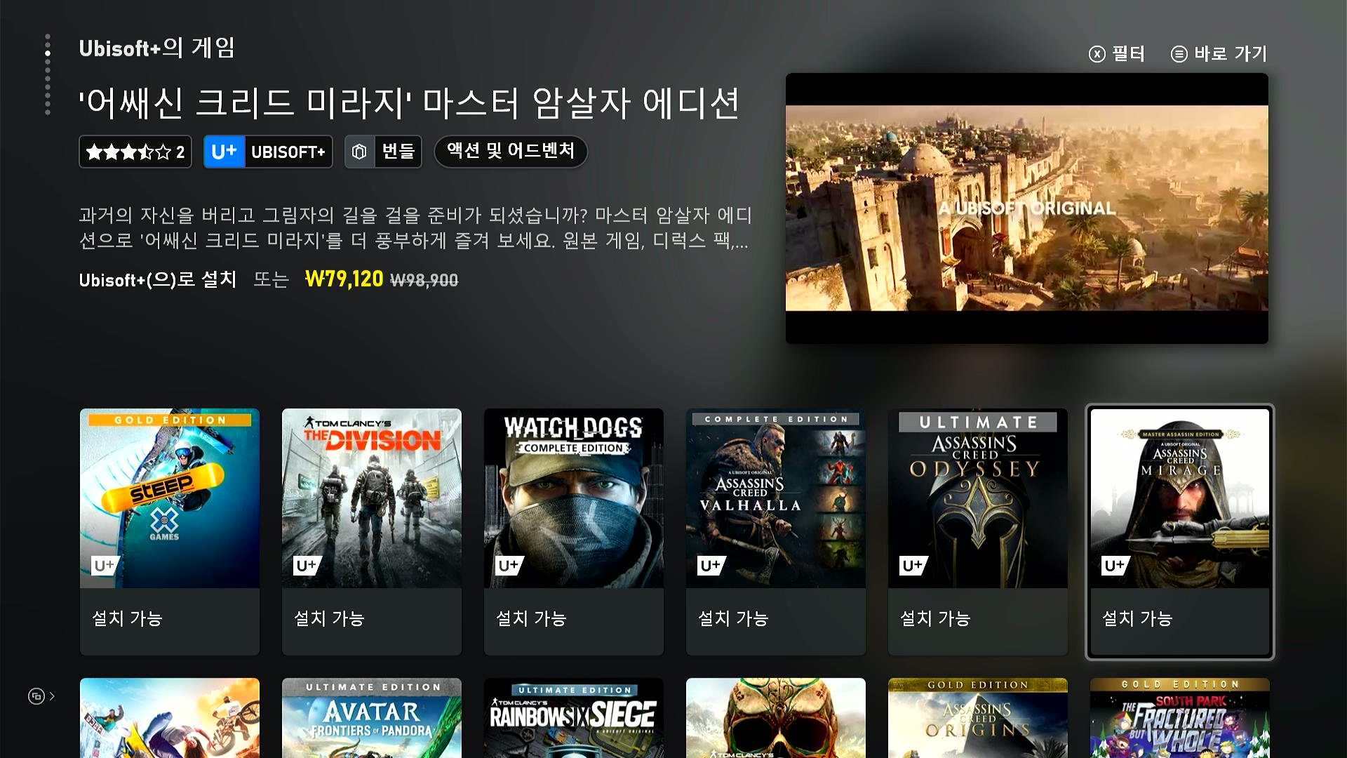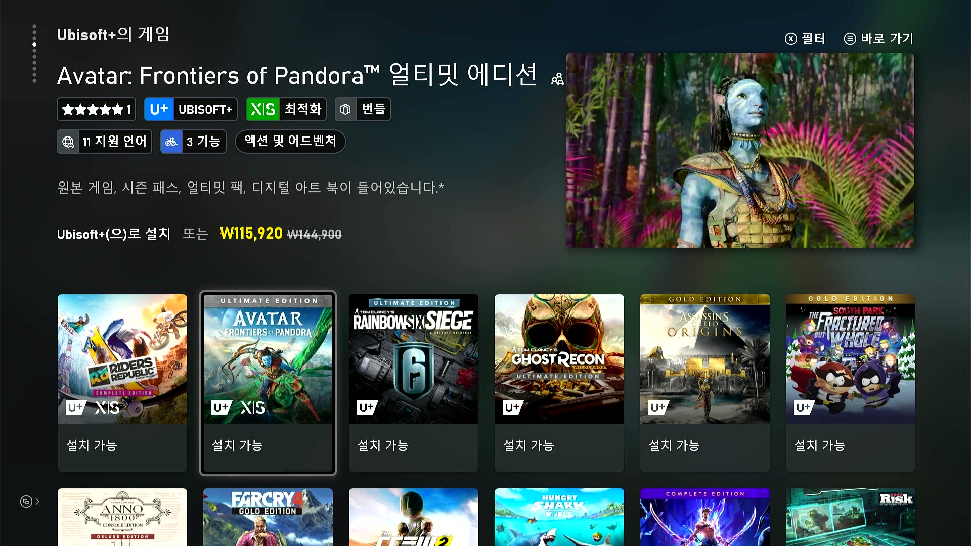 게임패스 말고도 유비소프트+라는 구독형 게임서비스가 추가로 있다.