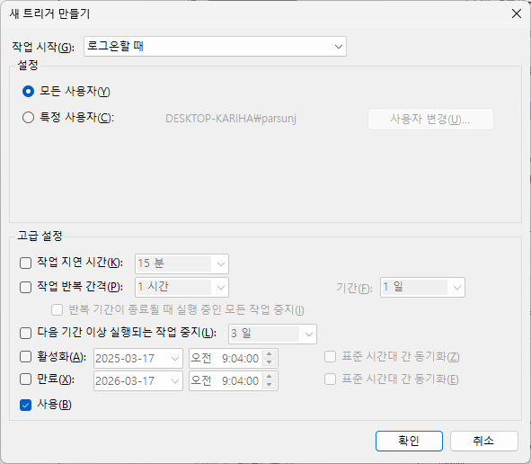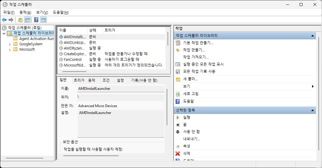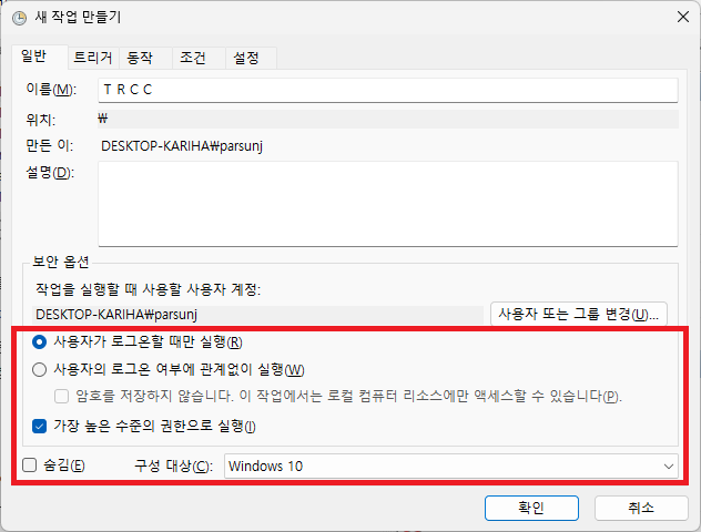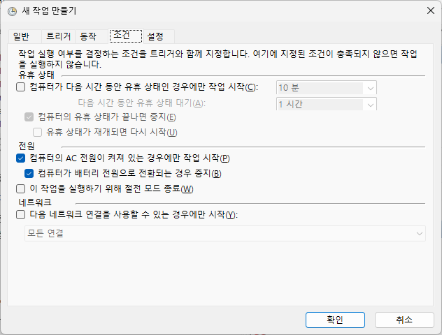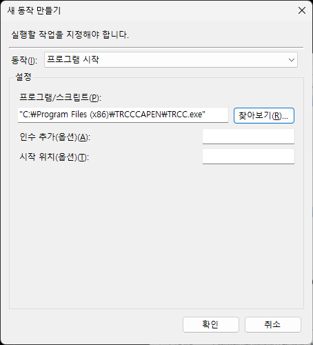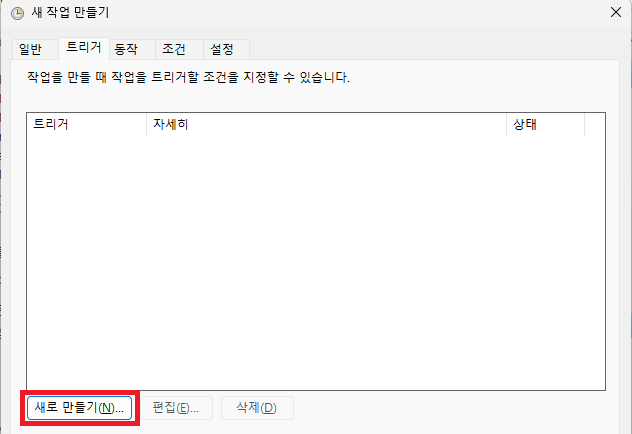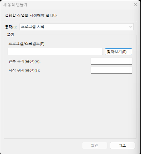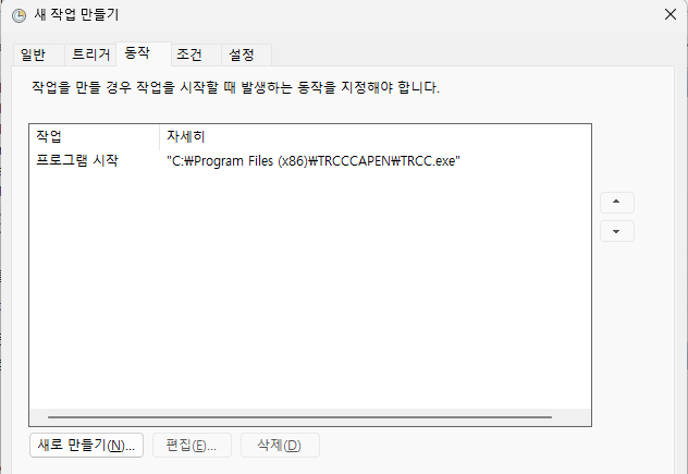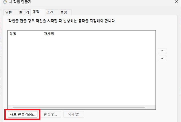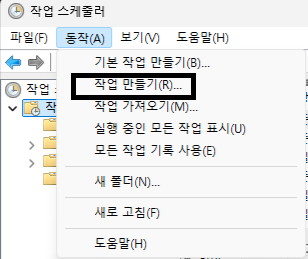 윈도우 - 작업 스케쥴러 - 동작 - 작업만들기