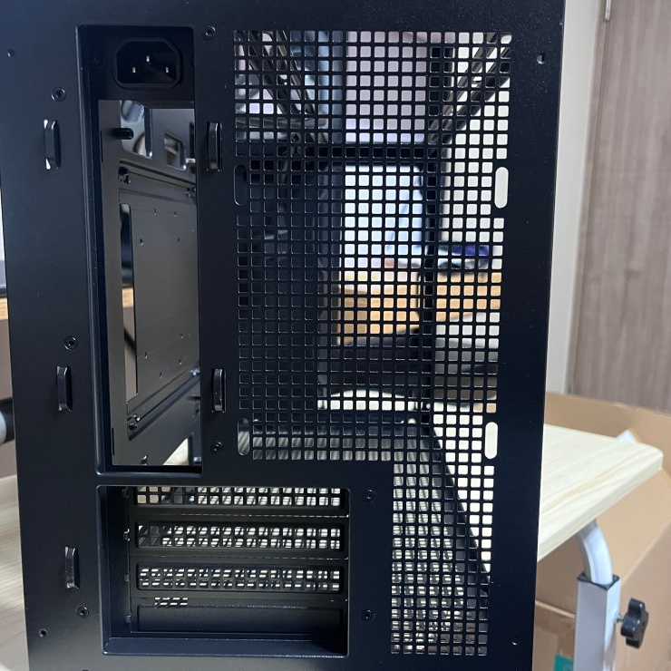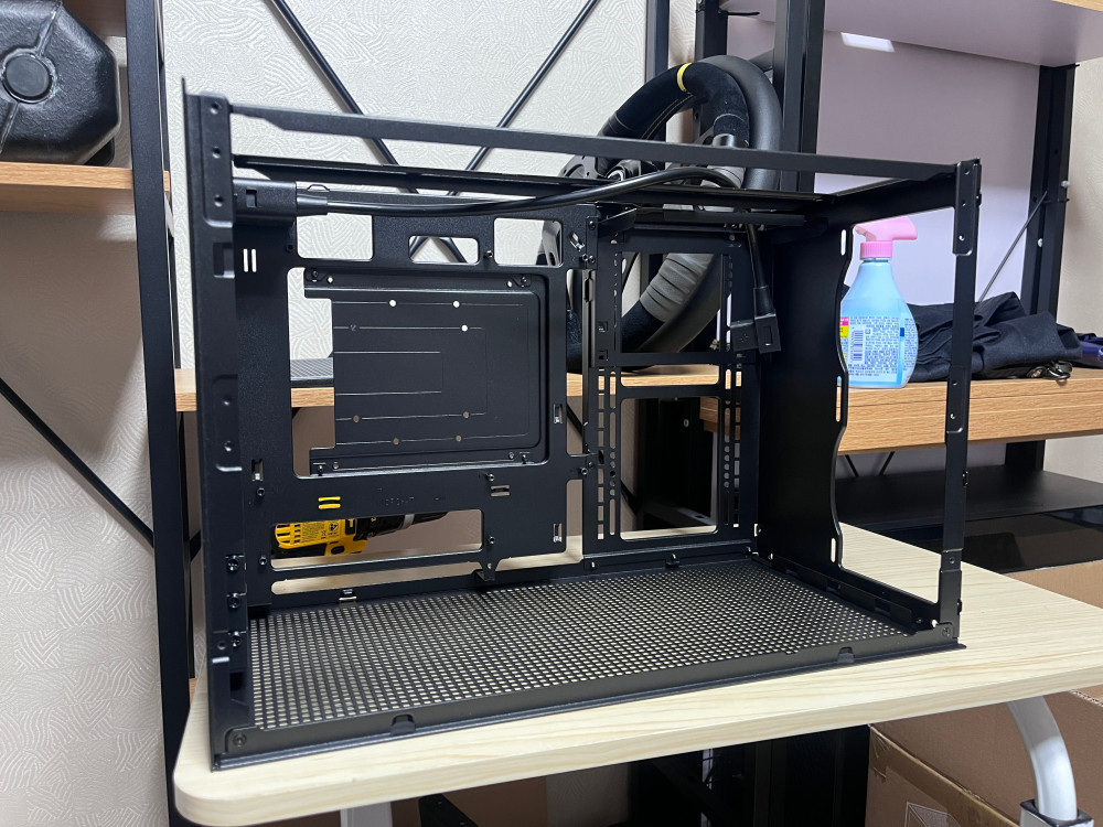 전면, 상단, 양쪽 측면 패널을 제거한 케이스 섀시와
