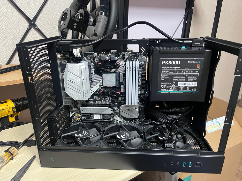 풀사이즈 M-ATX 보드와 ATX 파워를 장착할 수 있었음