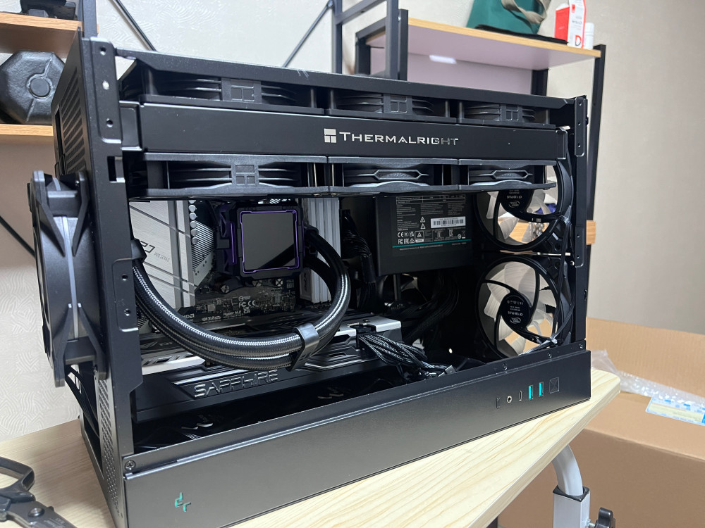 공식적으로는 측면 팬을 지원하지 않지만, ATX 파워 케이블의 간섭이 없거나 SFX 파워를 사용할 경우에는 측면에도 추가로 120MM팬을 장착할 수 있음. 선정리 공간은 넉넉한 편.