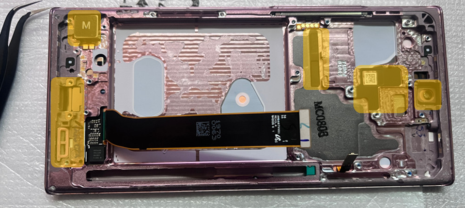 특히 전면 카메라쪽 스펀지와 하단의 진동모듈은 반드시 필요하기 때문에, 꼭 옮겨담아주도록.