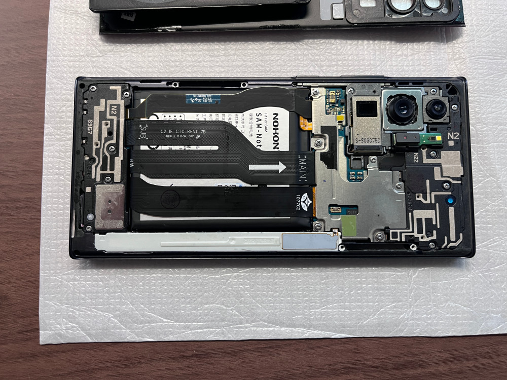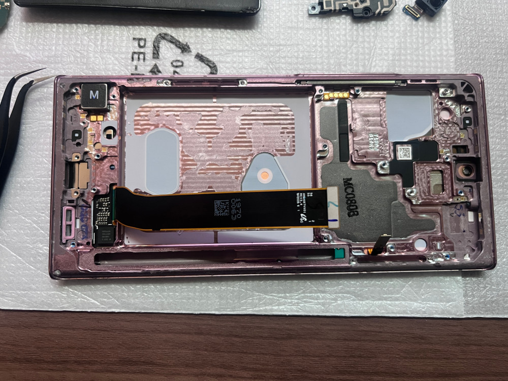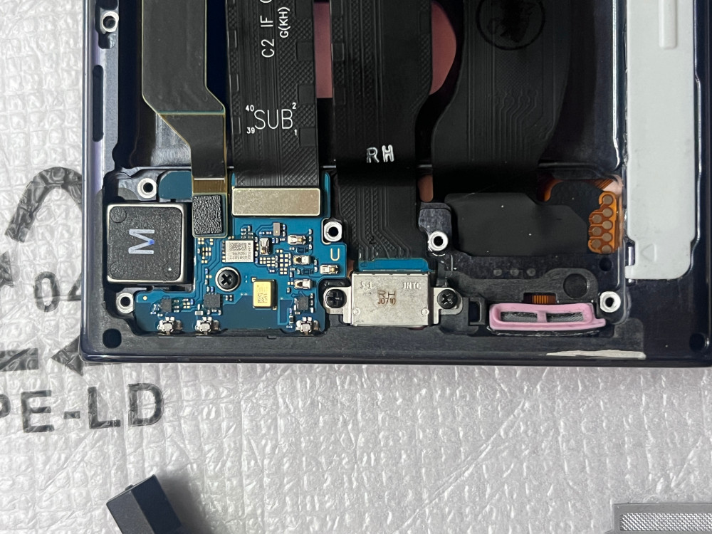 하단부 이식의 경우 C타입 충전 포트를 우선적으로 넣어주고, M이 적혀있는 부분에 기판을 넣어주면 하단부는 끝.