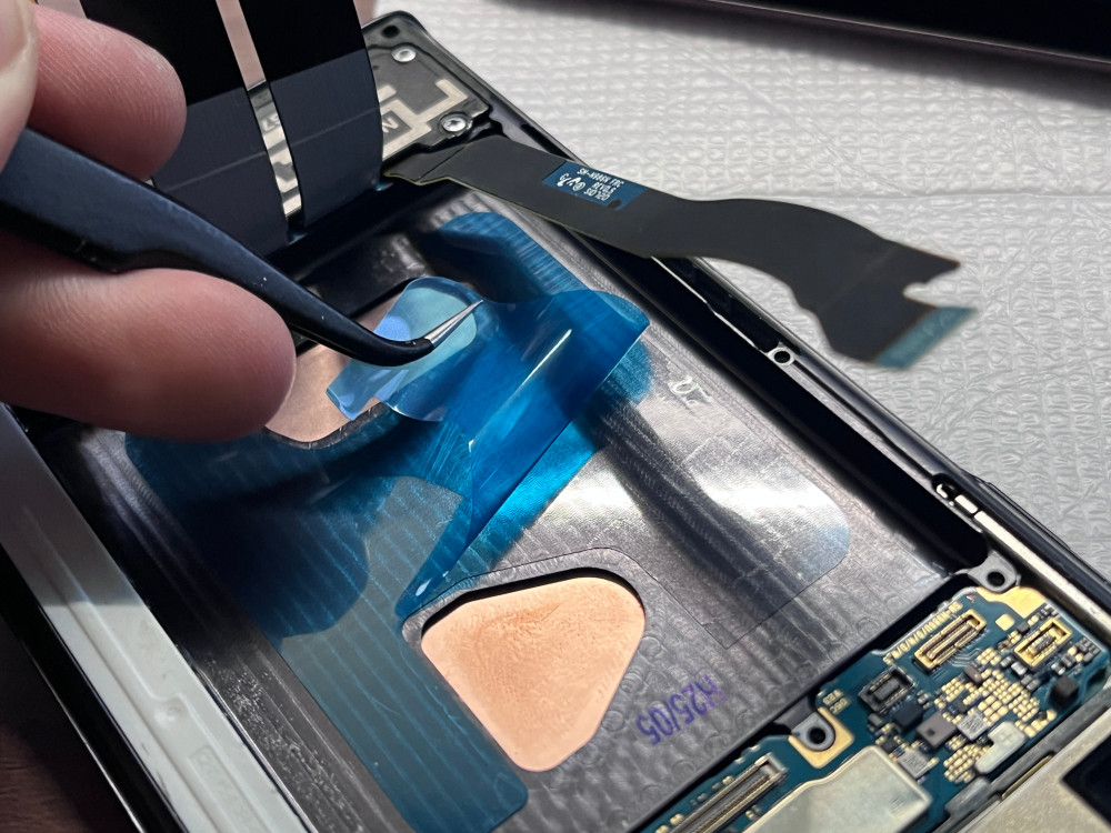 구입했던 배터리를 장착하기 위해 접착제의 필름을 벗겨준 뒤 배터리를 장착.