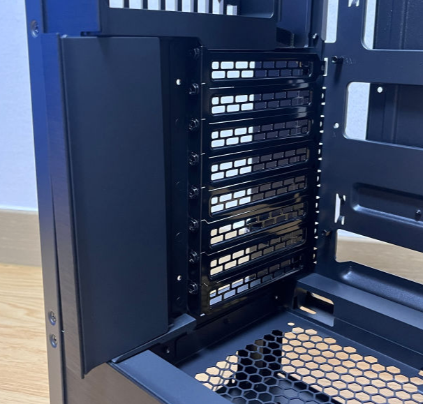 PCI 슬롯의 경우 사이드 커버를 제거하고 장착하는 방식.