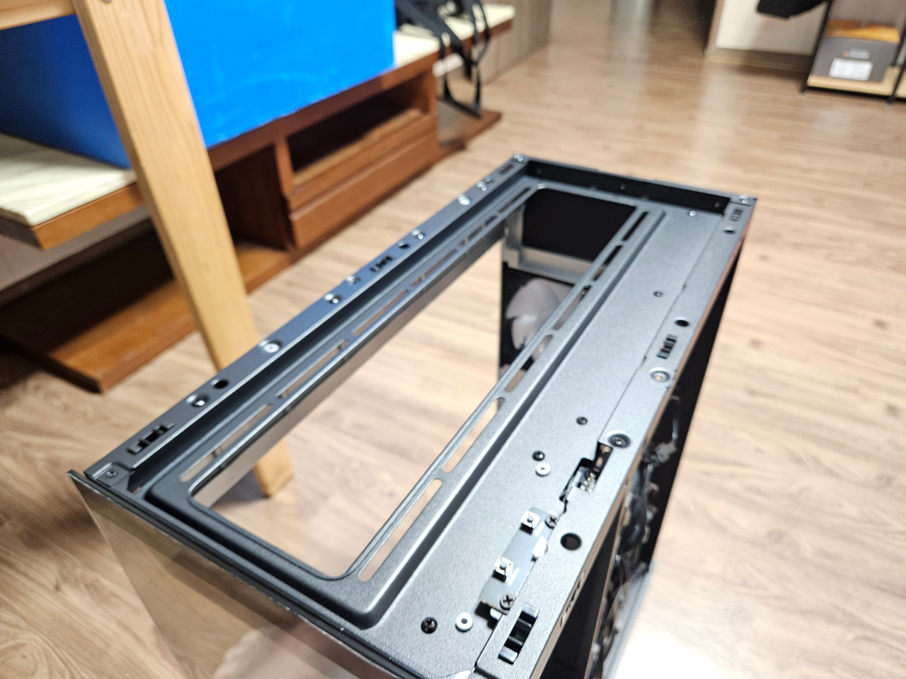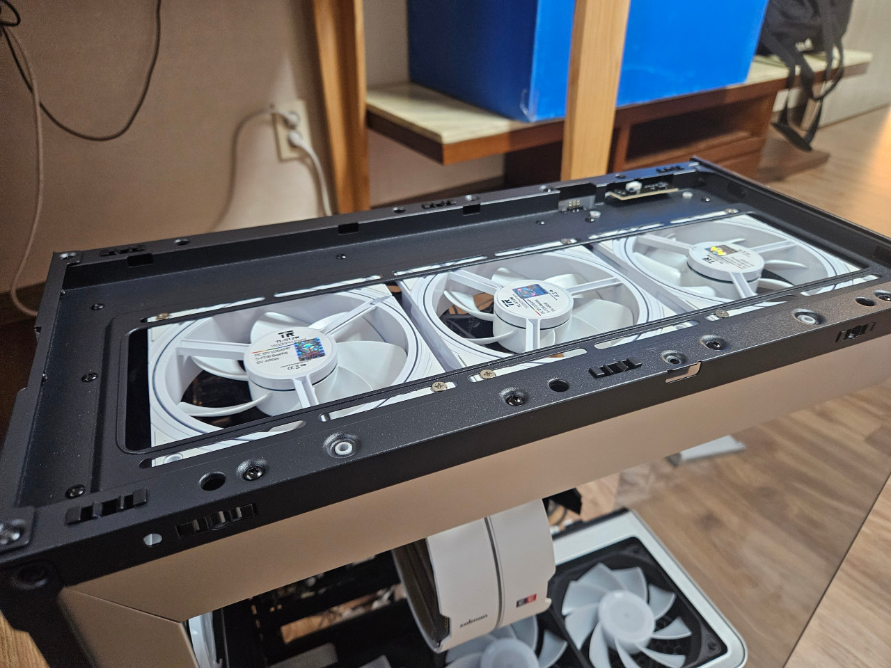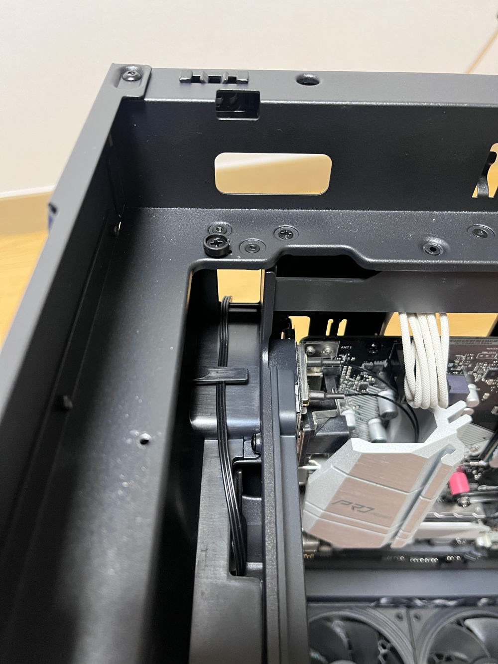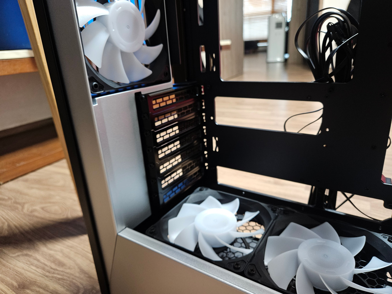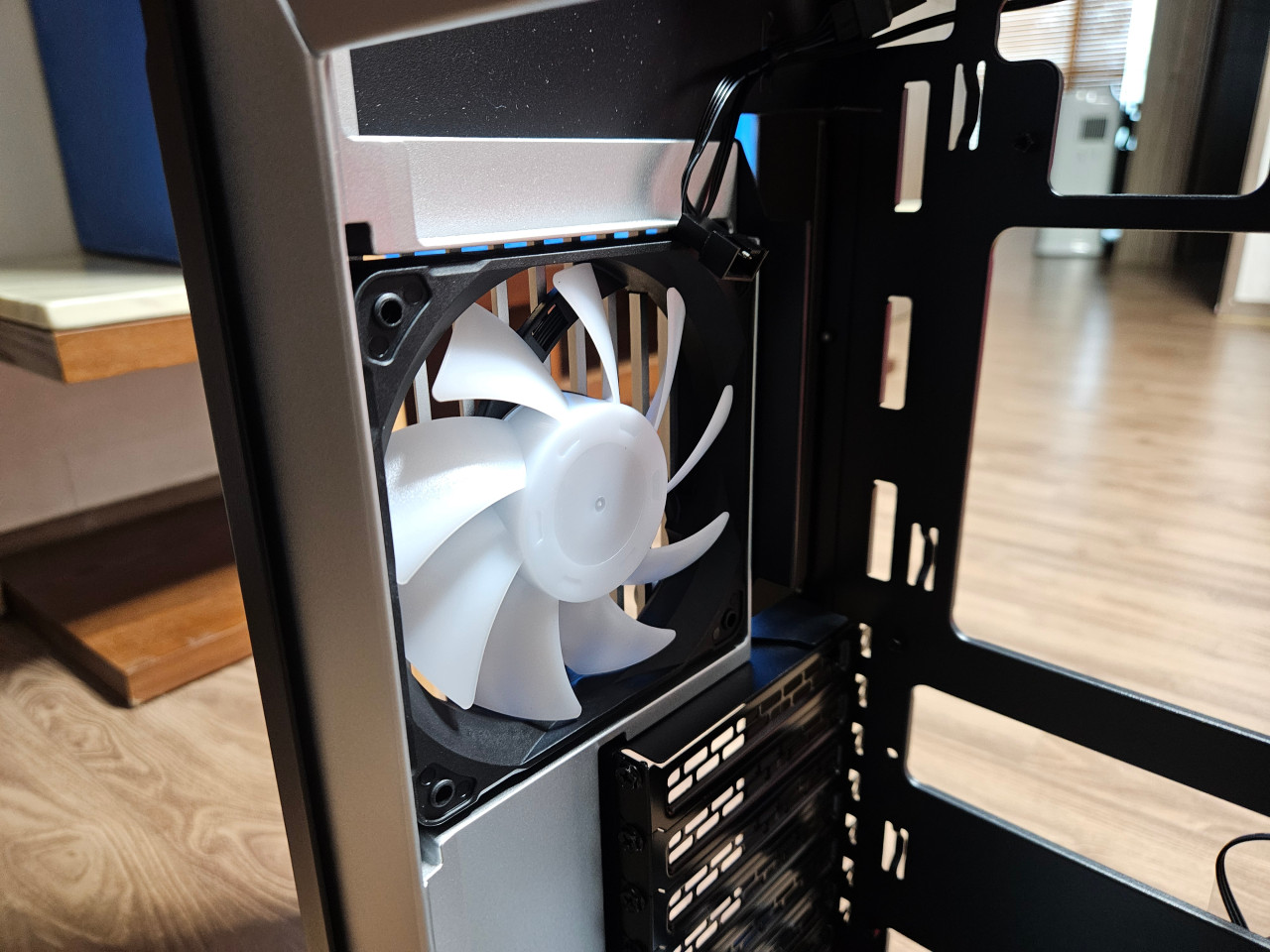 후면 팬 공간은 X2와 비슷하게 연출이 되어있으나. 기본 포함된 데이지 체인 형식의 팬커넥터가 노출되어 깔끔하지 못한 모습을 보이고 있다. 특히 X2는 선을 당겨서 좀 더 깔끔하게 마감을 할 수 있는데 그에 비해서 S2는 노출된 팬커넥터를 제외하더라도 케이블 자체를 깔끔하게 정리를 하지 못한다는 부분이 아쉬웠다.