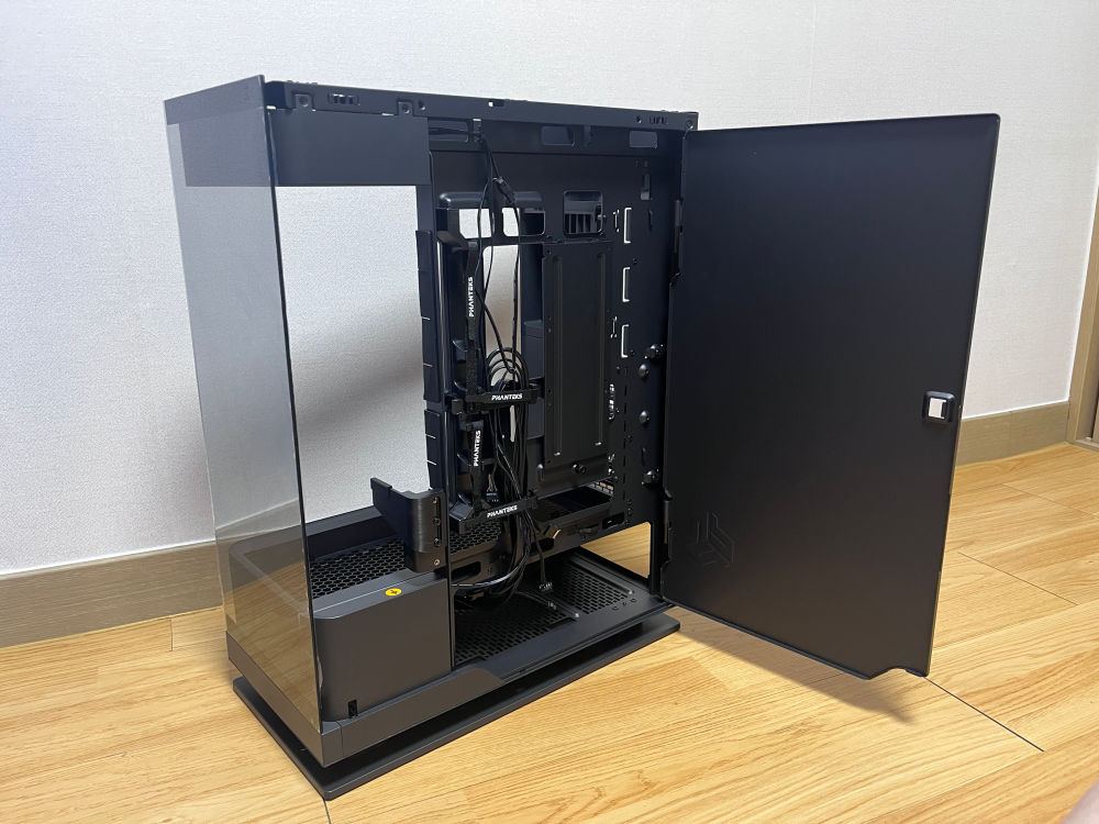 우측사이드 패널의 경우 강화유리로 되어있는 점은 동일하나. X2와 다르게 케이스 자체의 별도의 패널이 없고. 오직 사이드 패널로 케이블을 가릴 수 있게 바뀌었다.